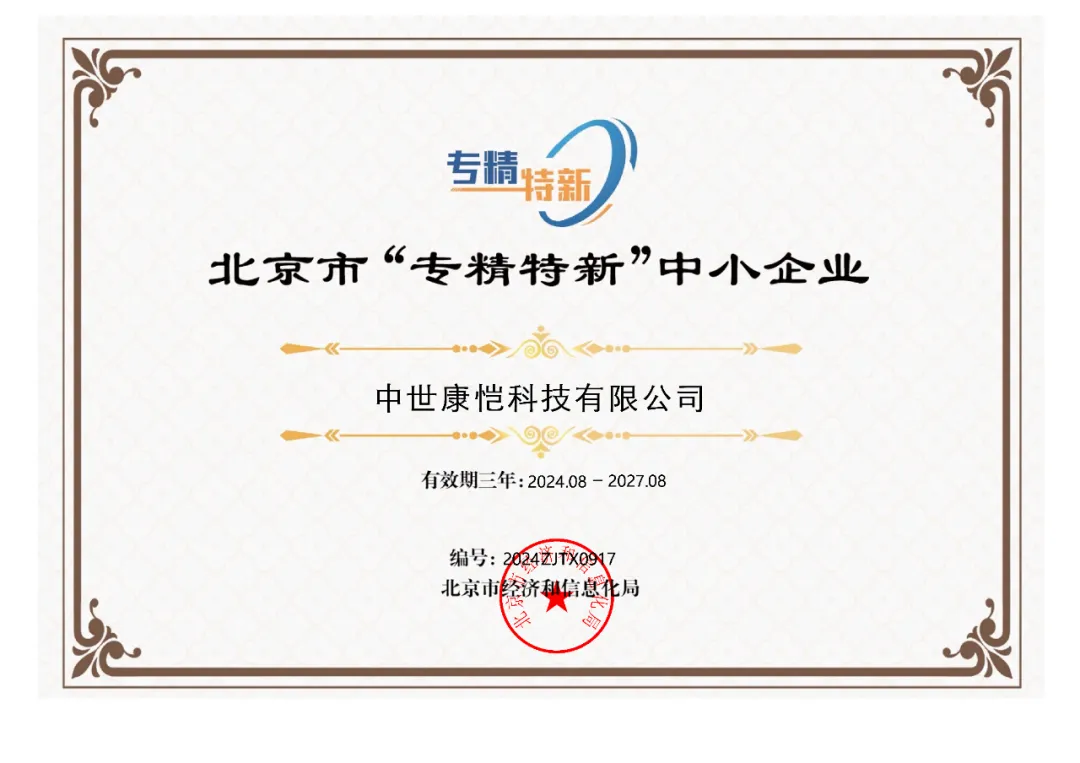 中世康愷榮獲北京市“專精特新”中小企業(yè)稱號,開啟發(fā)展新篇章!